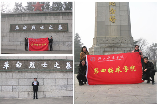 我院教工党支部一行来到位于襄城区羊祜山的烈士陵园,瞻仰了“革命烈士纪念塔”,参观了烈士陵墓,学习了他们的英雄事迹。参观结束后,在烈士墓前开展了“缅怀先烈、畅谈学习十八大体会”的活动。张侃侃代表新职工谈了自己学习十八大精神的体会,表达了对革命烈士的敬仰之情。