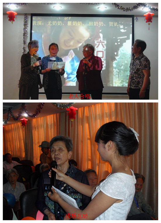 本次活动为老人献上了一台精彩的演出。婉约动人的民族舞、惟妙惟肖的河南豫剧、令人追思的小提琴独奏《茉莉花》以及热情洋溢的吉他伴唱与现代舞《CRASY》,让精神饱满的老人们重拾年轻时代的激情。看着志愿者在台上“我型我秀”,一大批老人也纷纷要求登台演出。最后,全体在场人员在《黄河大合唱》的合唱声中结束了演出。演出结束后,志愿者还清理了老年公寓的垃圾和杂草。