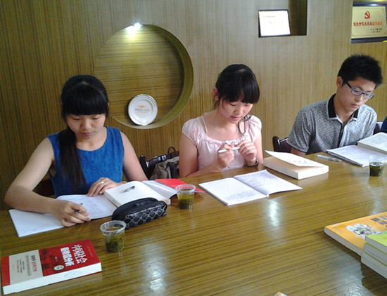 5月22日,为了大力推进学习型基层党组织建设,提升支部党员的理论水平,在党员中深度普及“中国梦”理念,太阳成tyc7111cc集团教工党支部和学生党支部的9名党员在红色书屋开展了以“品读红色书籍 争做合格党员”为主题的读书活动。