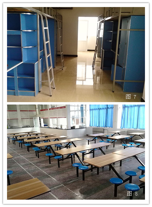 七层以上的标准化学生宿舍,单间建筑面积均在25平方米以上,住宿学生4-5人,设单独卫生间,独立阳台,配有中央空调,定时热水。