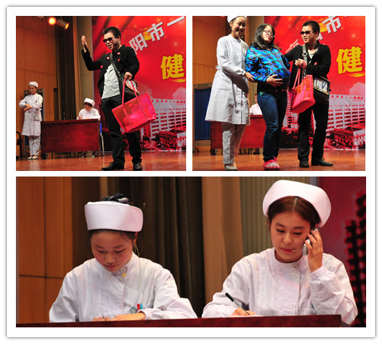 本次比赛经历了两个多月的精心筹备,我院学生代表队作为独立的参赛单元参与比赛。由学生自编自导自演的情景剧《相亲相爱一家人》,以孕妇入院分娩为背景,以护患关系为主线,以护士化解护患冲突为依托,向大家展示了医院的入院流程以及护士在健康宣教过程中的作用。演员们演技娴熟,表情自然,言行举止诙谐幽默,笑点不断。通过护患互动将将医患关系展现得淋漓尽致,体现了医患一家亲的和谐就医环境。