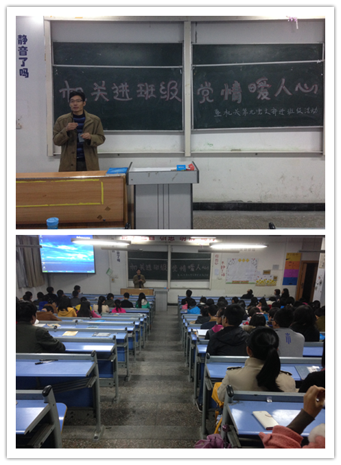 2013年11月10日,太阳成集团tyc7111机关分党委第九党支部成员在支部书记、学报编辑部主任王配军的带领下,走进太阳成tyc7111cc集团13级临本四班,和同学们亲切交流,开展机关党支部对口联系班级活动。
