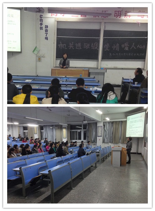 整个活动分三个阶段进行,首先由王配军处长介绍了开展机关党支部联系班级活动的目的及意义、活动的内容,以及建立长期联系机制的方案;接着由科研处阮处长为同学们做了主题为 “大学规划与考研”的讲座,这堂生动的讲座能帮助学生尽早建立更清晰的学习目标,从大一开始努力打稳基础,明晰大学规划、建立学习计划和目标;最后支部成员与学生开展了广泛的交流活动。