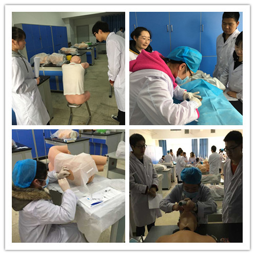 在问诊培训环节,指导教师扮演病人,学生采集病史,再现医患场景,进行问诊实景操作。不但对学生的问诊技巧进行了强化,同时也加强了学生们医患沟通的能力。依次进行的穿刺术、心电图操作、气管插管、体表肿物切除、新生儿心肺复苏及产科检查等培训,也均在设计好的临床病例情景中,要求学生提出初步诊断和下一步的处理措施,并操作完成。