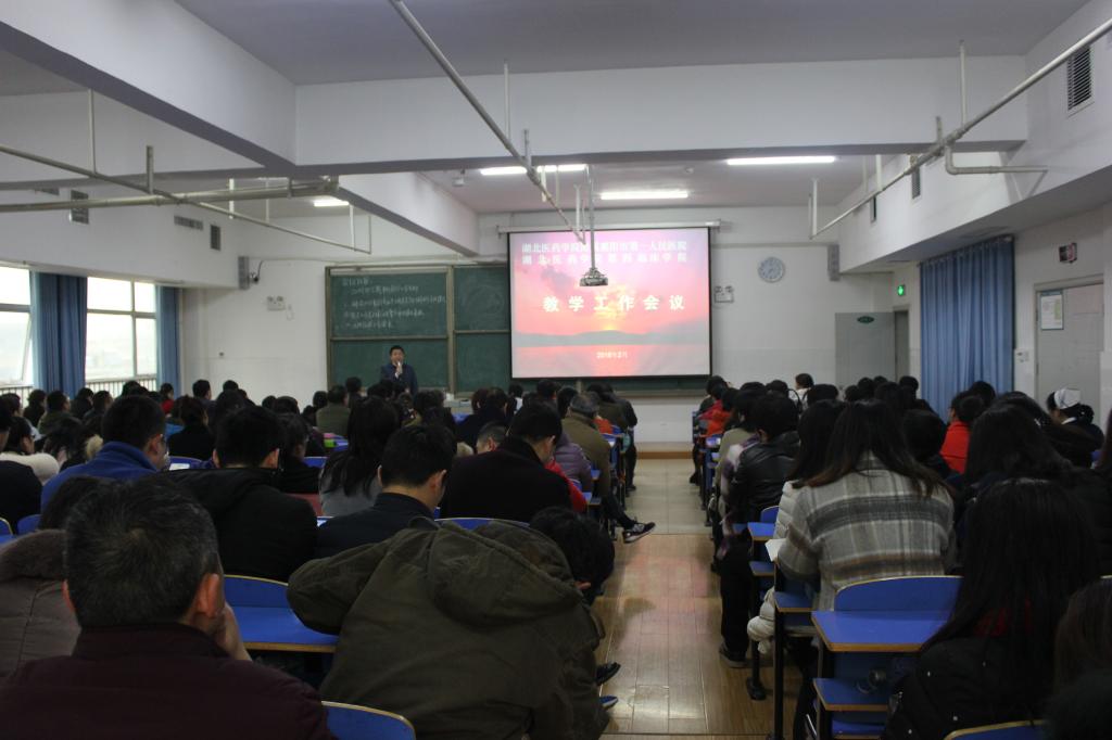 张敏院长向参会的教职工报告了太阳成tyc7111cc集团2017年在各项教学工作上取得的成绩,并介绍了2018年太阳成tyc7111cc集团将推进的各项工作,其中特别强调四院将引入更多互联网+技术,开发雨课堂,同时尝试向内分泌、血液、生殖等系统扩展实施课程整合,深入研究推动整合医学教育,并取得实效。张敏院长号召四院全体教师高度重视教学工作,“久久为功”,持之以恒,同时提高个人素养,增强个人能力,在日常教学中带领学生,帮助学生树立正确价值观、职业观,努力做到“敬业乐群、师表八荒”。