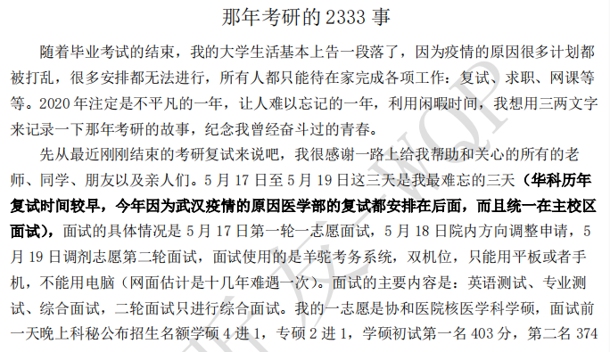除了参加线上考研经验分享的同学,还有几名优秀考研学子因事无法参加线上交流会,他们也通过文字的形式将考研经验传递给学弟学妹,希望能为四院考研学子提供一些帮助。