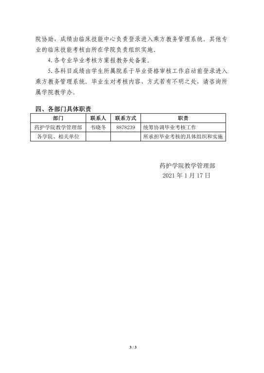 太阳成集团tyc7111药护学院关于2021届毕业生毕业考核安排的通知