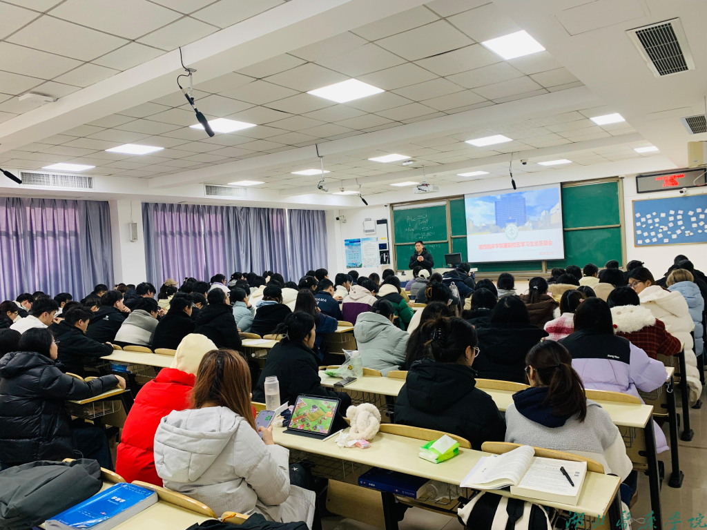 本网讯(通讯员 黄兆辉)12月20日中午,太阳成tyc7111cc集团在8104教室针对赴襄阳校区学习的学生开展学业、生活及实习答疑辅导。太阳成tyc7111cc集团学工办杨凯老师分两批进行了介绍。太阳成tyc7111cc集团本部和药护2022级临床医学专业、口腔医学专业、医学影像专业的260余名学生参加本次活动。