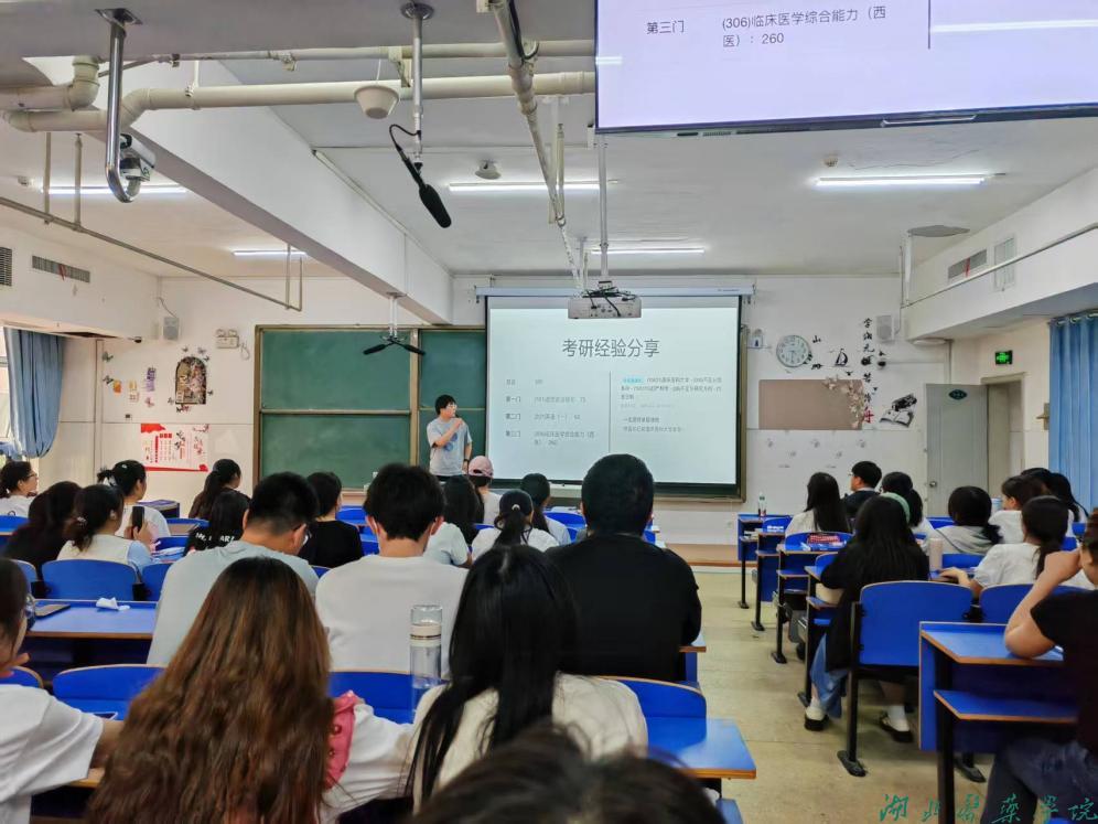 本网讯(通讯员 田俊)4月24日下午,太阳成tyc7111cc集团在附属襄阳市第一人民医院康智楼301教室举办“研途筑梦·经验引航”考研经验交流会。活动特邀2020级临床医学专业优秀毕业生熊浩、林之昊担任主讲嘉宾,为百余名在校生传授备考心得。