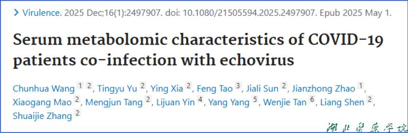 王春花/申梁教授团队在Virulence杂志上发表了合并ECHO病毒感染的COVID-19 患者的血清代谢组学特征
