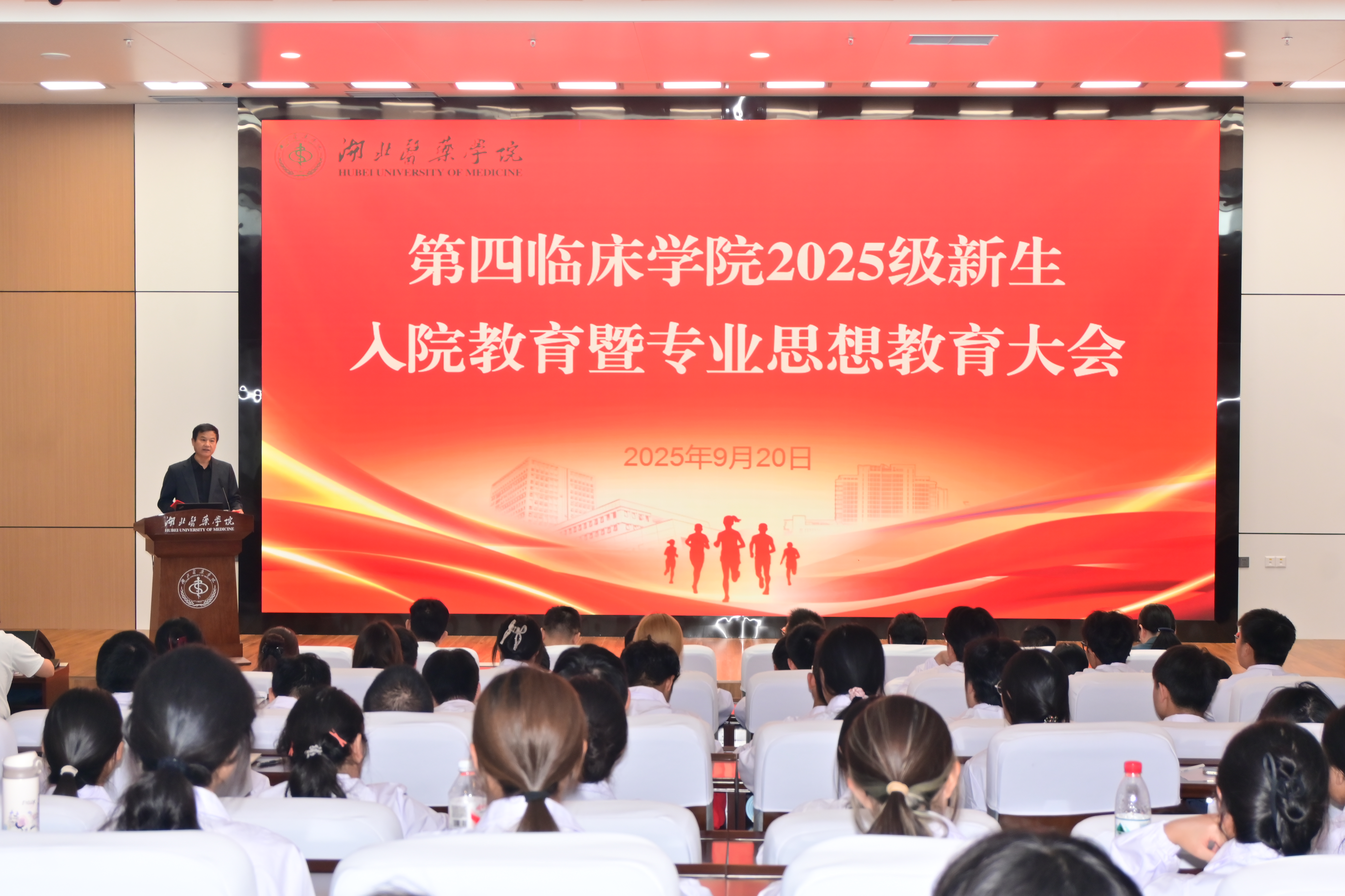本网讯(通讯员 郑雯艺 龙月娇)9月20日下午,太阳成tyc7111cc集团在公卫大楼二楼学术报告厅召开2025级新生入院教育暨专业思想教育大会。太阳成tyc7111cc集团院长周卫兵,党委书记、常务副院长赵国新,党建组织员李贵华,副院长焦蓉、桑明、杨军、刘岳、党委委员周静然出席大会,十堰校区全体教师、2025级全体新生参加会议。本次会议由郑建超主持。