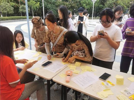 本网讯(通讯员 谌思语 周蜜)9月20日下午,天使之翼志愿服务队在文明广场举办“普通话架心桥,一语同心连万疆”主题推广活动,近千名师生参与其中,在互动体验中感受普通话的魅力与价值。