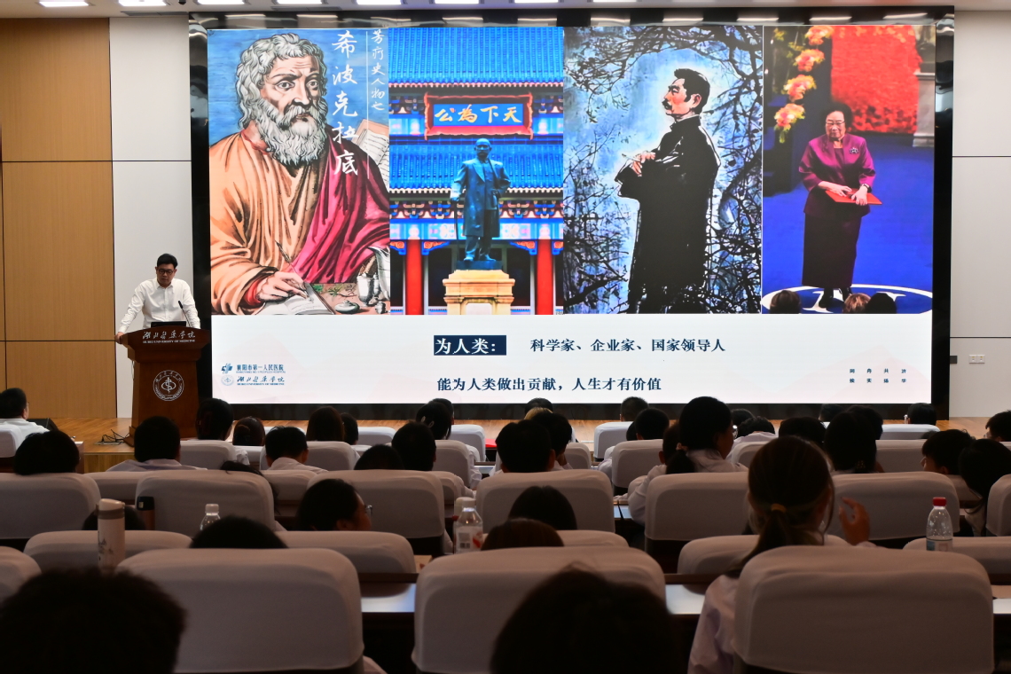周卫兵致欢迎辞,介绍襄阳市第一人民医院发展概况,分享医学生可能面临的挑战,希望同学们保持好奇、心怀敬畏、不负青春。保持好奇心,才能不断探索医学的未知领域。在漫长的学医路上,你们会遇到各种困难和挑战,也许会有疲惫的时候,也许会有迷茫的瞬间,但请一定要保持一颗敬畏之心,它将是指引你们不断前行的明灯。青春的日子很宝贵,别浪费在躺平和抱怨上,把时间花在学习上、花在提升自己上,让自己的白衣青春更有分量、更有意义。
