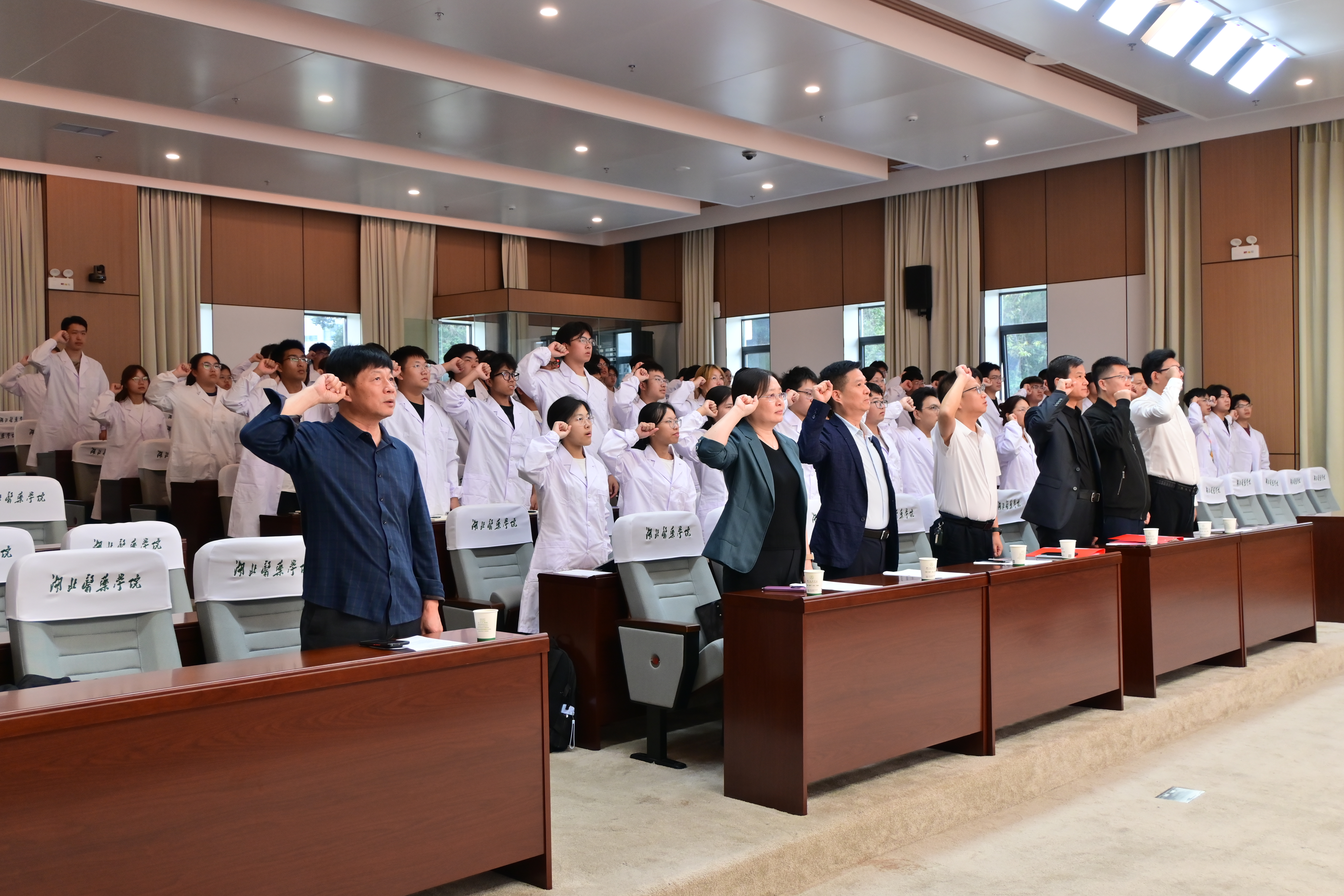 焦蓉带领全体新生宣读医学生誓词,“健康所系,性命相托”的铮铮誓言在会场中久久回荡。
