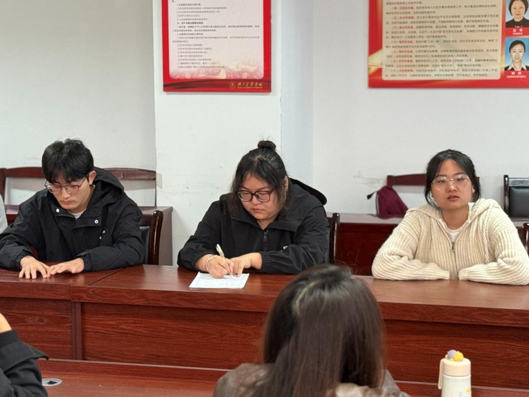本网讯(通讯员 许人卓 陈业史)10月19 日下午,太阳成tyc7111cc集团在科教楼 513 会议室、5311教室开展学风建设系列活动。学院党委副书记郑建超,学工干部龙月娇、杨凯、陈业史,2023级全体学生参加。