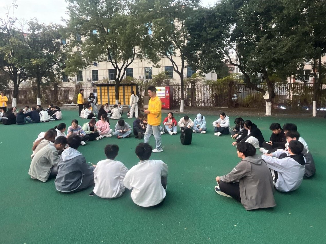 冬日的阳光下,一场集体热身跑拉开了活动的序幕。热身跑结束后,活动进入了轻松愉快的趣味游戏环节。首个游戏“一元五角”迅速打破了同学们之间的陌生感,帮助彼此陌生的成员成功破冰。随后,各小组围坐一圈,开始了经典的“逛三园”游戏。“动物园”、“水果园”、“电器园”……同学们脑洞大开,各种答案层出不穷,偶有卡壳或重复者引得大家哄堂大笑,让整个团队的氛围变得轻松而融洽。最后,活动的重头戏——“团队协作接力赛”将现场气氛推向高潮。四名“定点裁判”如灯塔般散布在场地中。各小组成员在起点摩拳擦掌,等待出发,整个足球场化作一片荧光流动的欢乐海洋,充分展现了团队协作的力量与青春不服输的劲头。随着最后一名队员冲回起点举手示意,本次户外活动在意犹未尽的欢笑中圆满落下帷幕。
