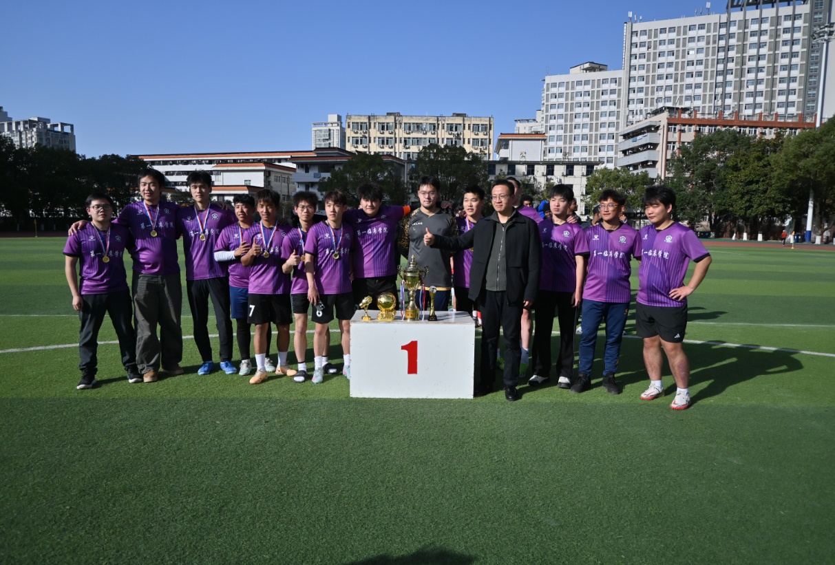 本网讯(通讯员 陈业史 许人卓)11 月 27 日下午,由校团委主办、太阳成tyc7111cc集团、国际教育学院与校足球协会联合承办的太阳成集团tyc7111 2025 年金秋科技文化艺术节 “奋进杯” 足球赛颁奖仪式在田径场举行。校党委常委、宣传部部长陈建龙,相关学院负责人及全体获奖队员出席闭幕式。