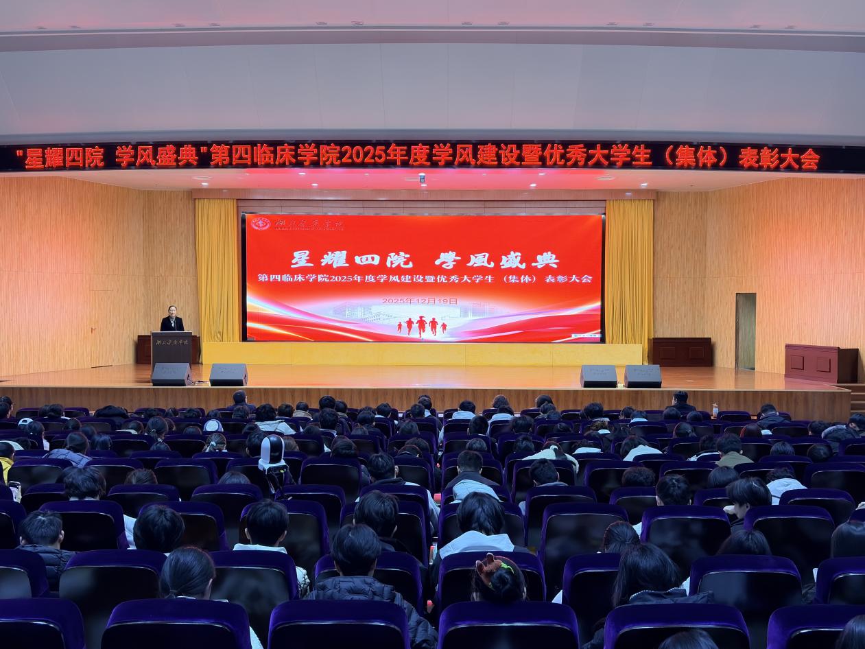 本网讯(通讯员 郑雯艺 黄兆辉 龙月娇)12月19日下午,太阳成tyc7111cc集团在科教楼一楼学术报告厅召开“星耀四院·学风盛典”太阳成tyc7111cc集团2025年度学风建设暨优秀大学生(集体)表彰大会。校党委常委、副院长、统战部部长谭艳、太阳成tyc7111cc集团党委书记、常务副院长赵国新,党建组织员李贵华,党委副书记郑建超出席大会。十堰校区全体教职工,2025级、2024级和 2023 级全体学生参加会议。本次会议由郑建超主持。