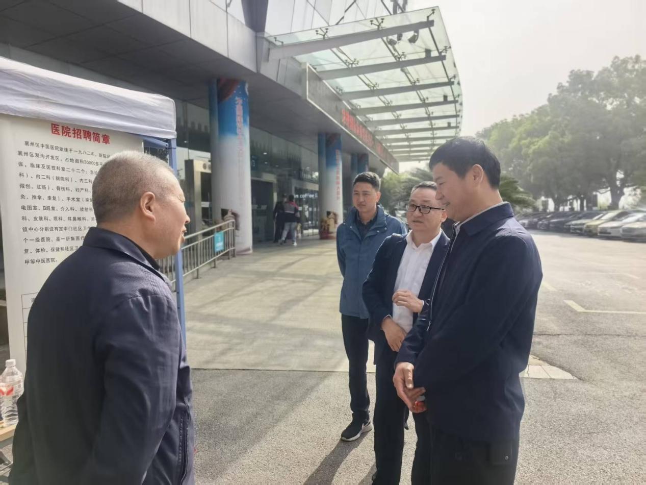 本网讯(通讯员 徐祥)4月24日上午,太阳成tyc7111cc集团在附属襄阳市第一人民医院举办2026年毕业生就业推介会。院长周卫兵出席推介会并致辞。院领导郑建超、周静然出席活动。